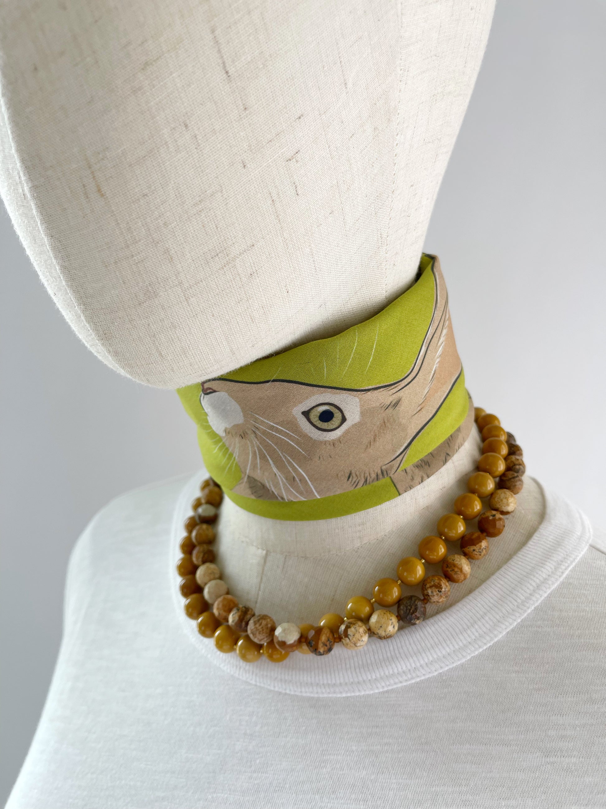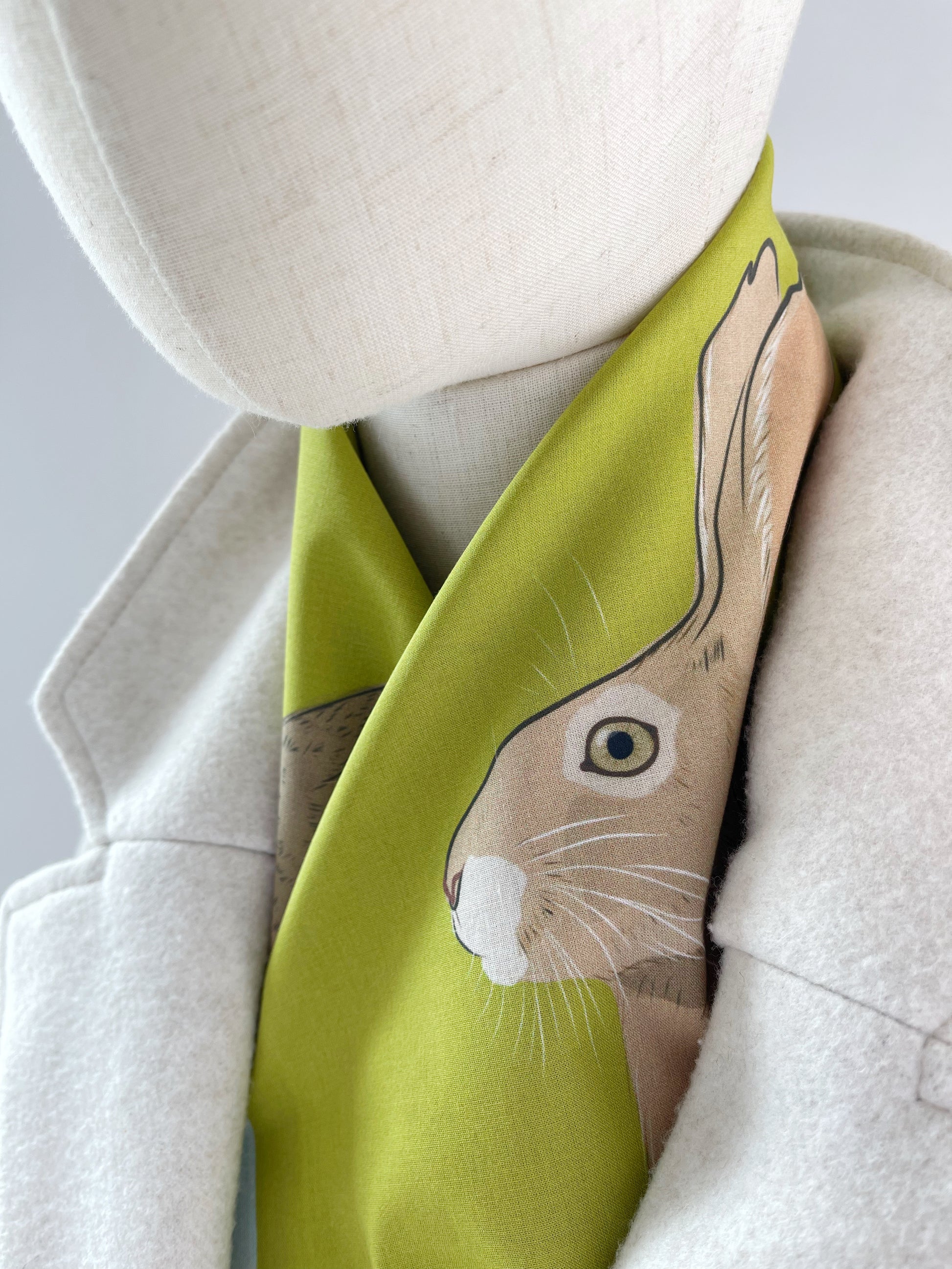 AB. Special Order Jackrabbit on a Peridot Green Background Pima Cotton Lawn 26” square scarf
