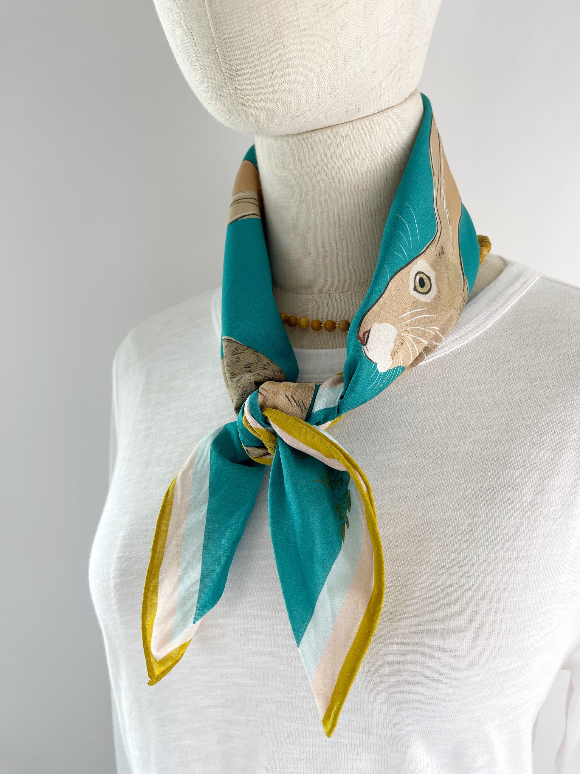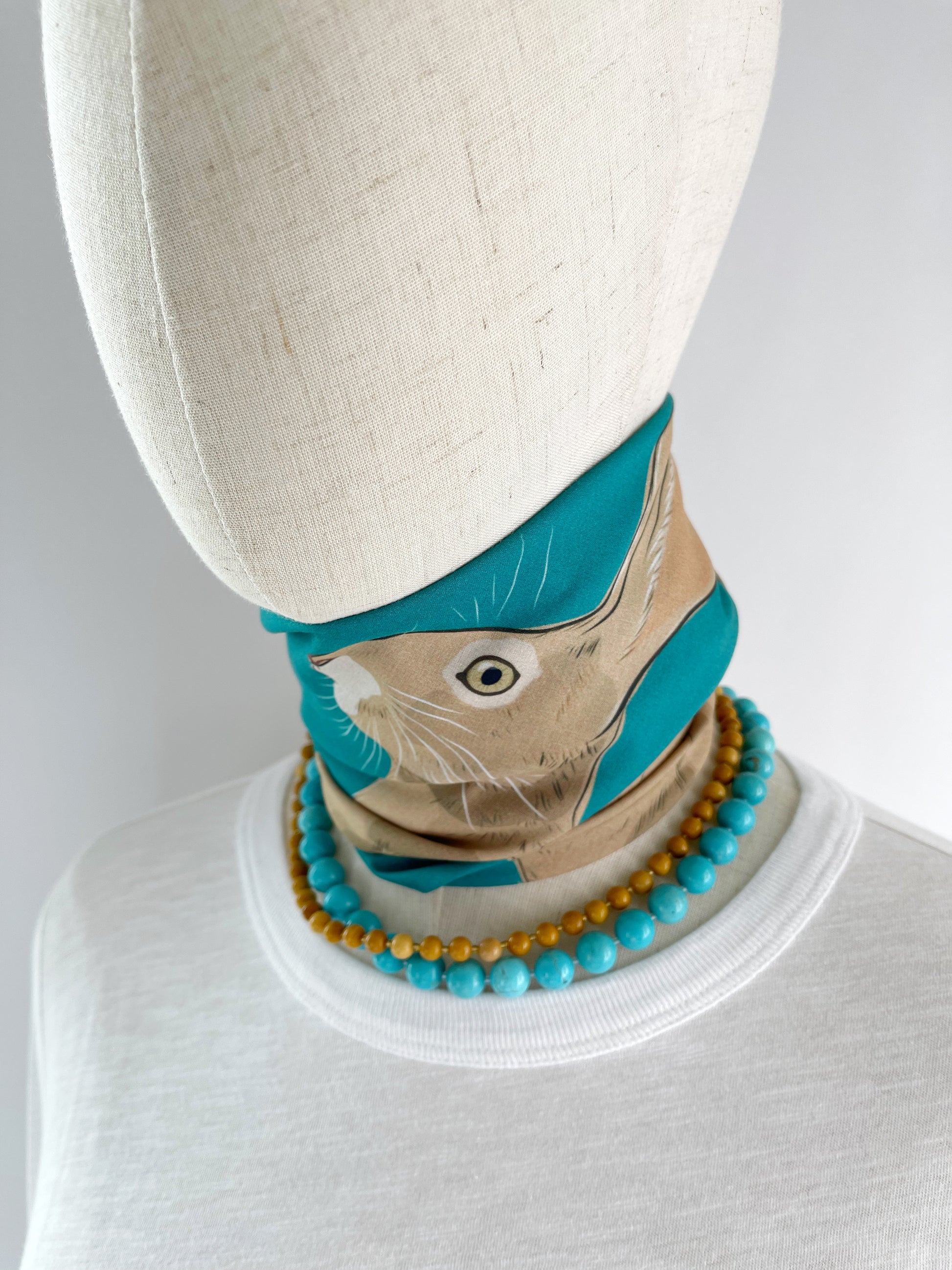 AB. Special Order Jackrabbit on a turquoise blue background Pima Cotton Lawn 26” square scarf