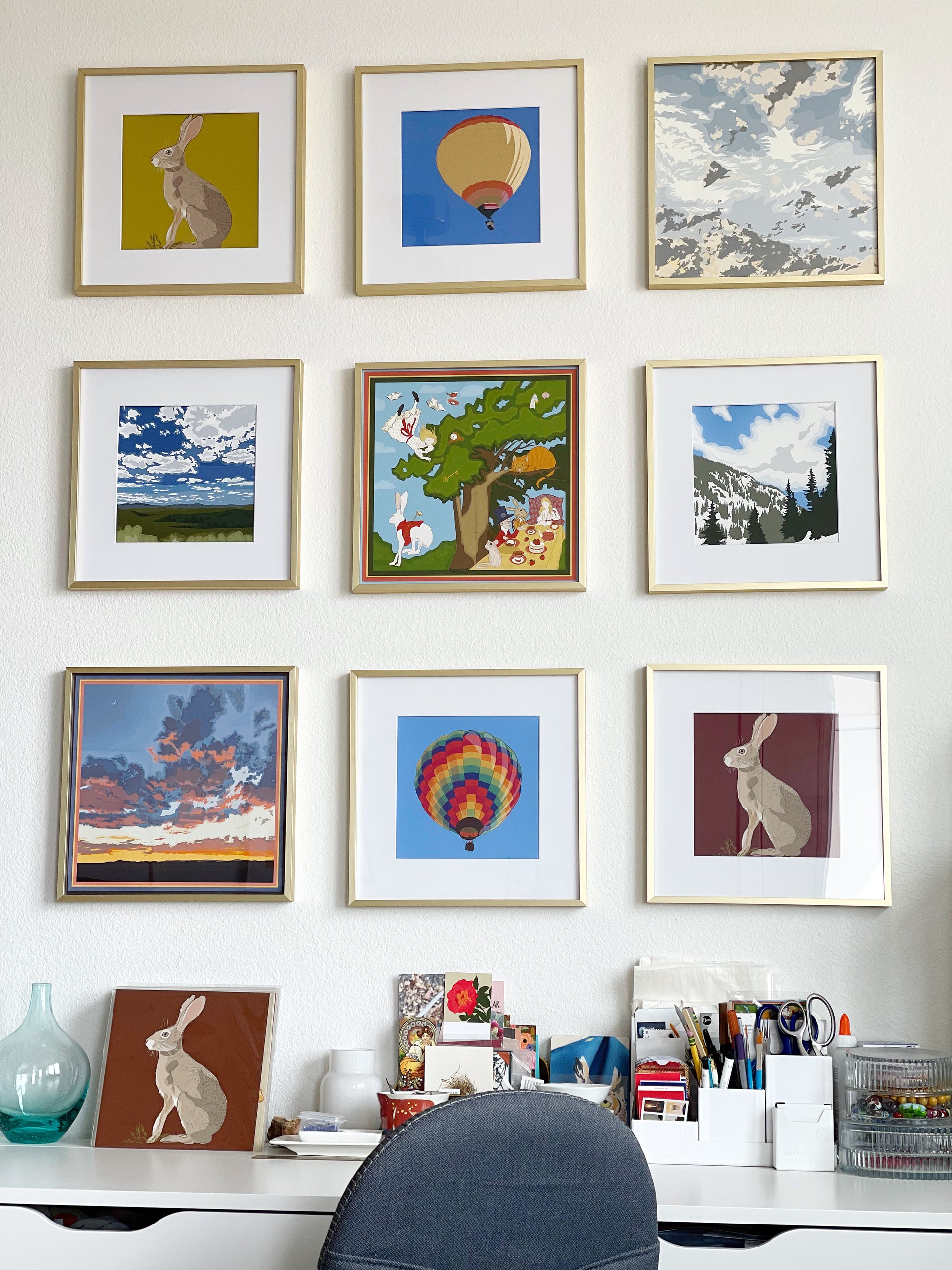 Here’s my drawing of a Jackrabbit with a peridot green background. Giclee printed on fine art photographic paper with a matte finish and slight watercolor paper texture, 8” x 8”.