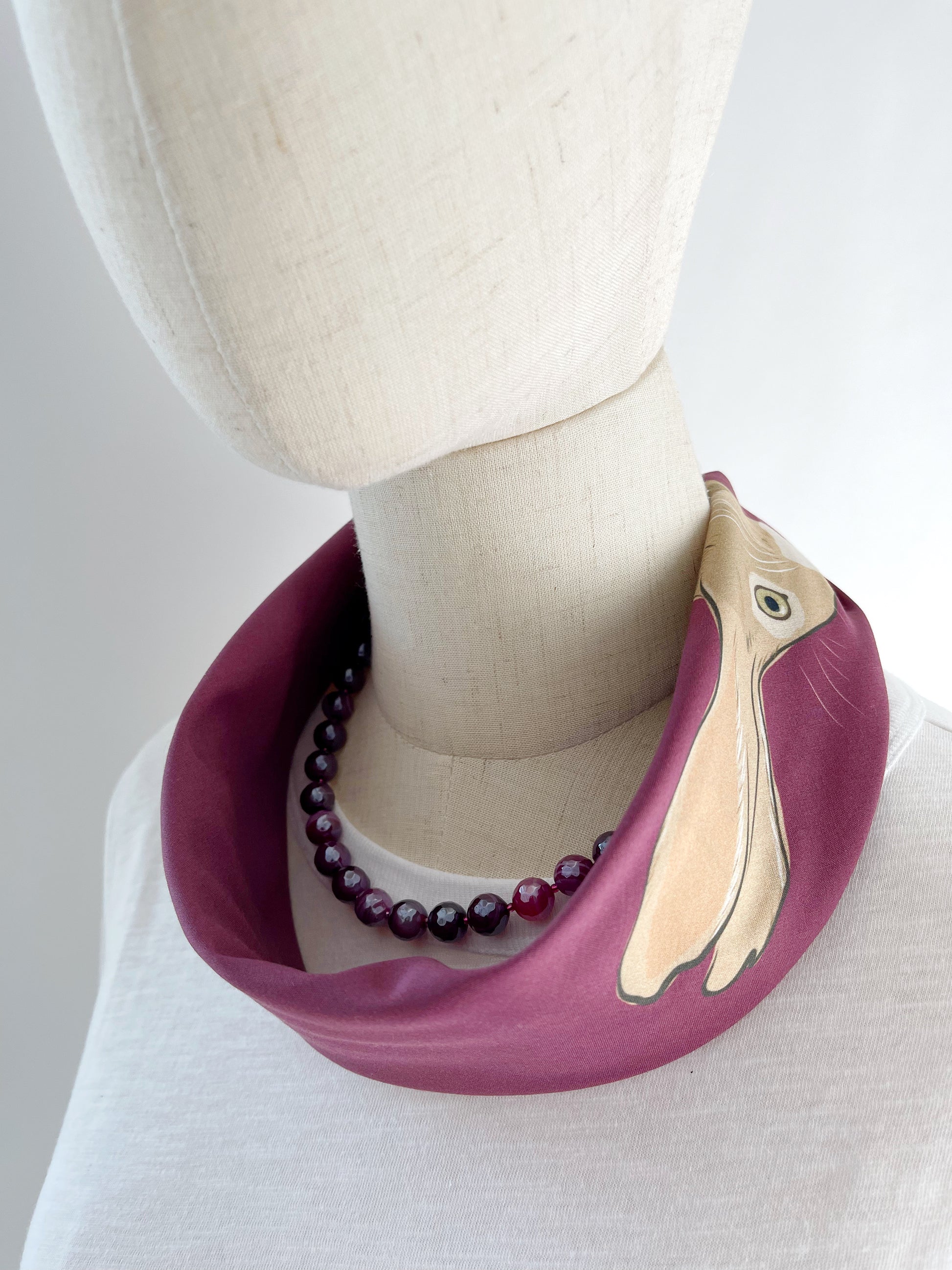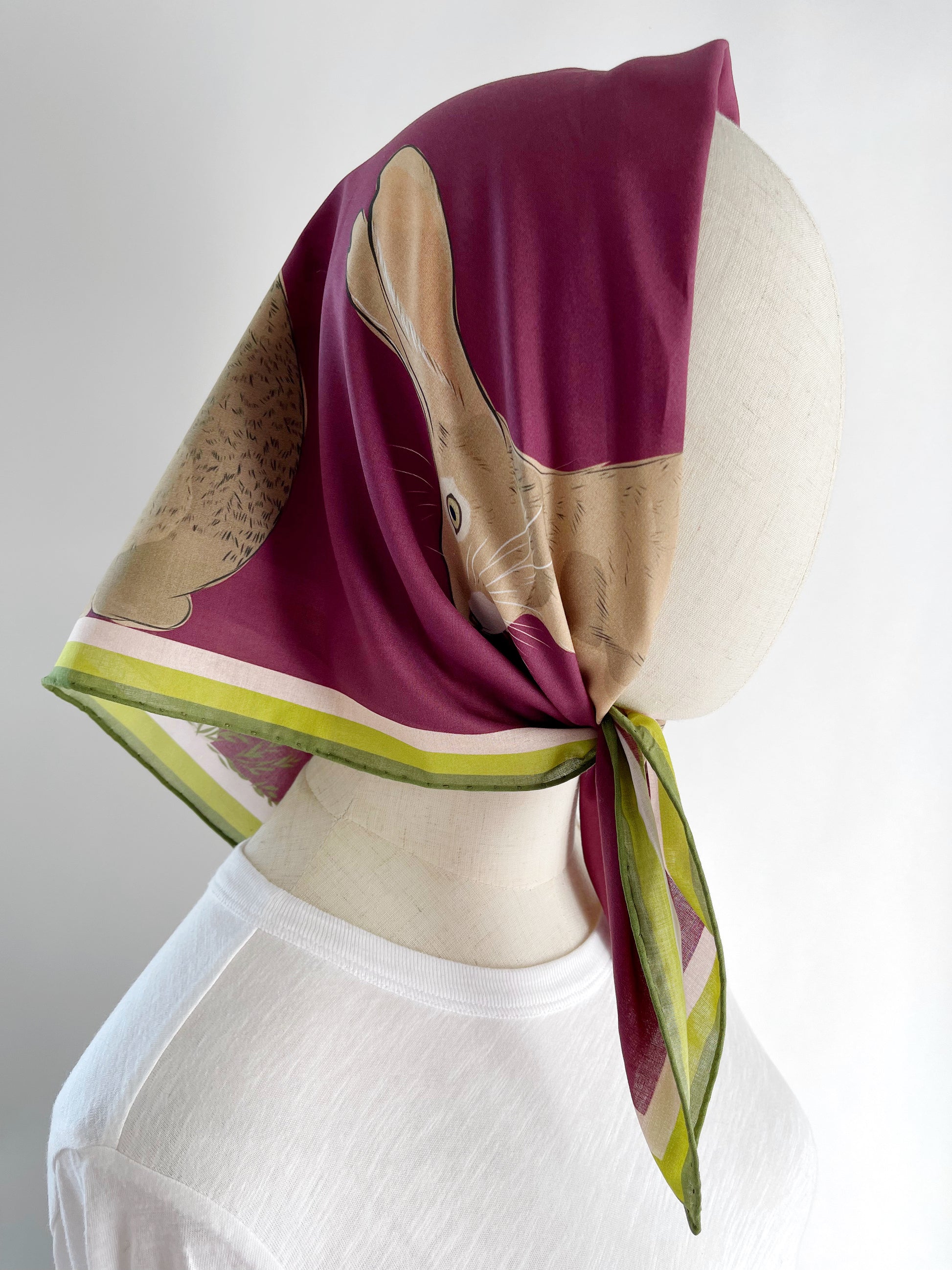 AB. Special Order Jackrabbit on Beetroot Background Pima Cotton Lawn 26” square scarf